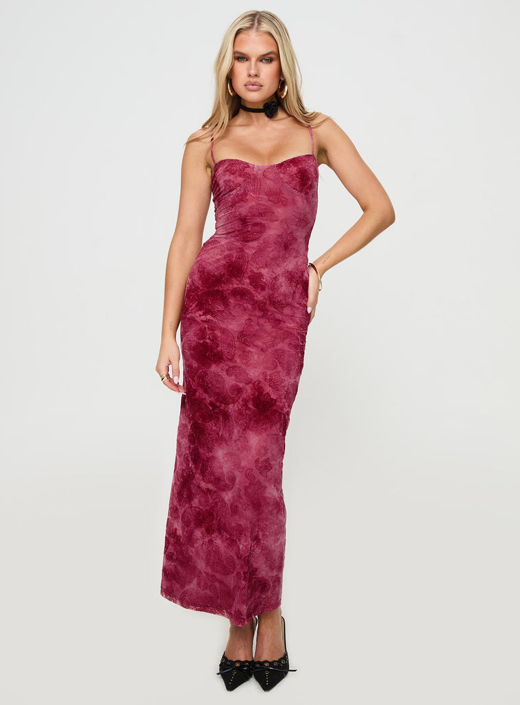 Orla Paisley Maxi Dress Burgundy has a rating of 4.9 stars based on 7 reviews.