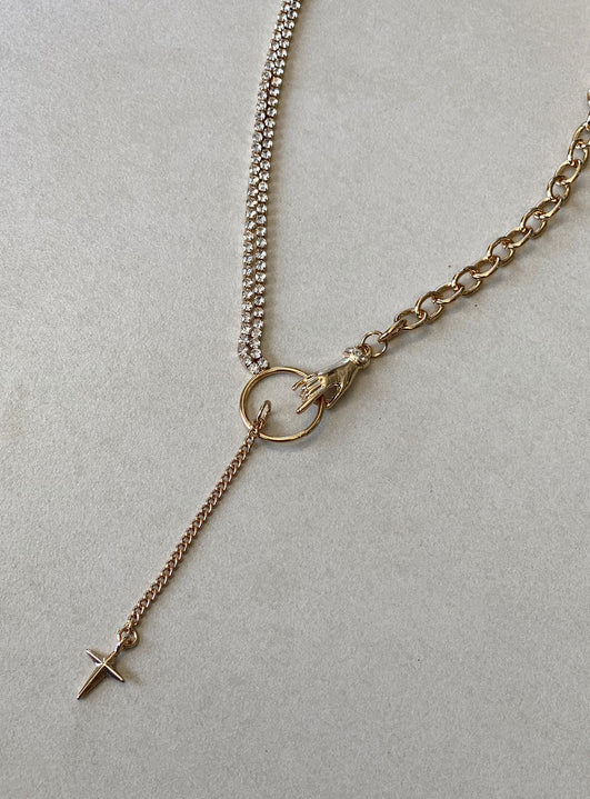 Necklace Single chunky style chain Diamante detail Gold-toned Drop charm Lobster clasp fastening