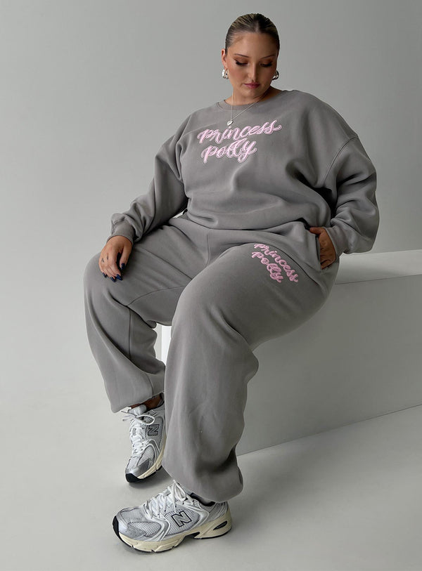 Princess Polly Crew Neck Sweatshirt Puff Text Charcoal Curve