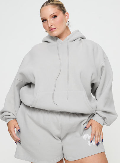 Princess polly hooded sweatshirt puff text grey curve