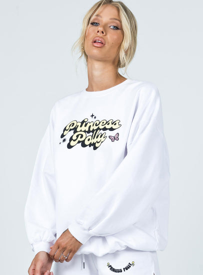 Princess Polly Yasmin Crew Neck Sweatshirt White has a rating of 4.9 stars based on 8 reviews.