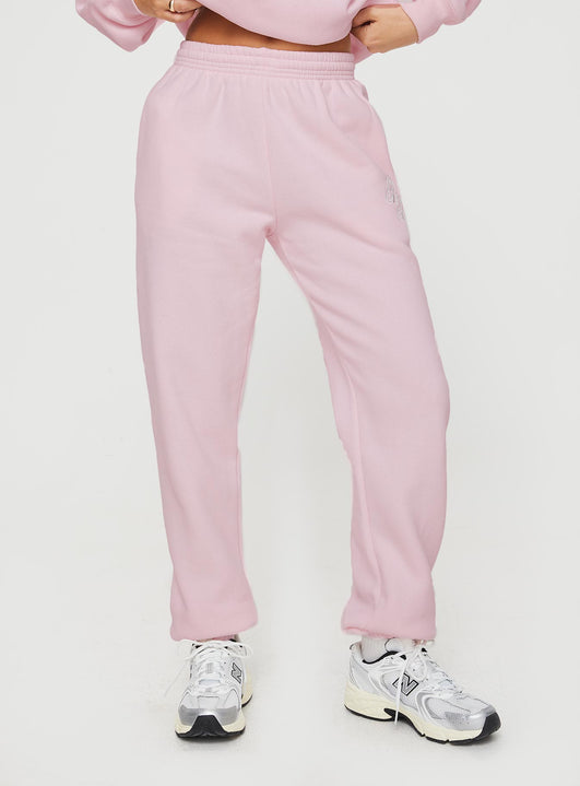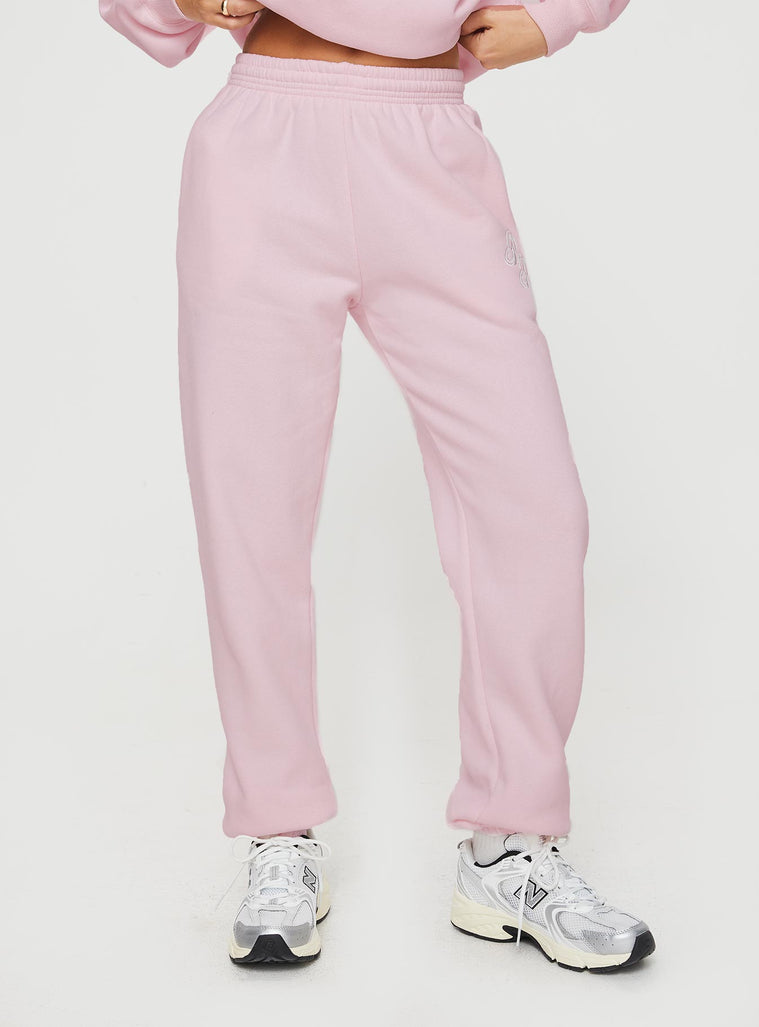 Princess Polly Track Pants Script Baby Pink / Grey has a rating of 5 stars based on 12 reviews.