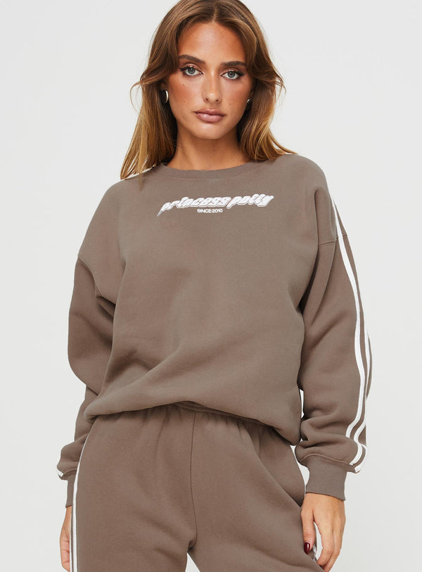 Princess Polly Track Pants Stripe Taupe / White