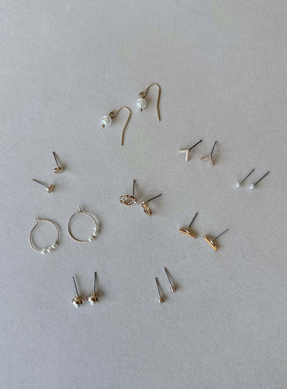 Earring pack Pack of nine pairs Gold-toned Stud, hoop & hook fastening Pearl & diamante detail