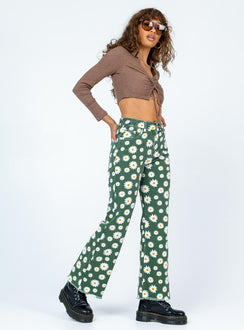 Floral print, belt looped waist, button & zip closure, five pockets, frayed hem, branded patch at back