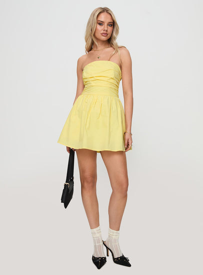 - Straight neckline, pleats detailing, elasticated band at bust, invisible zip fastening at back, shirred band at back