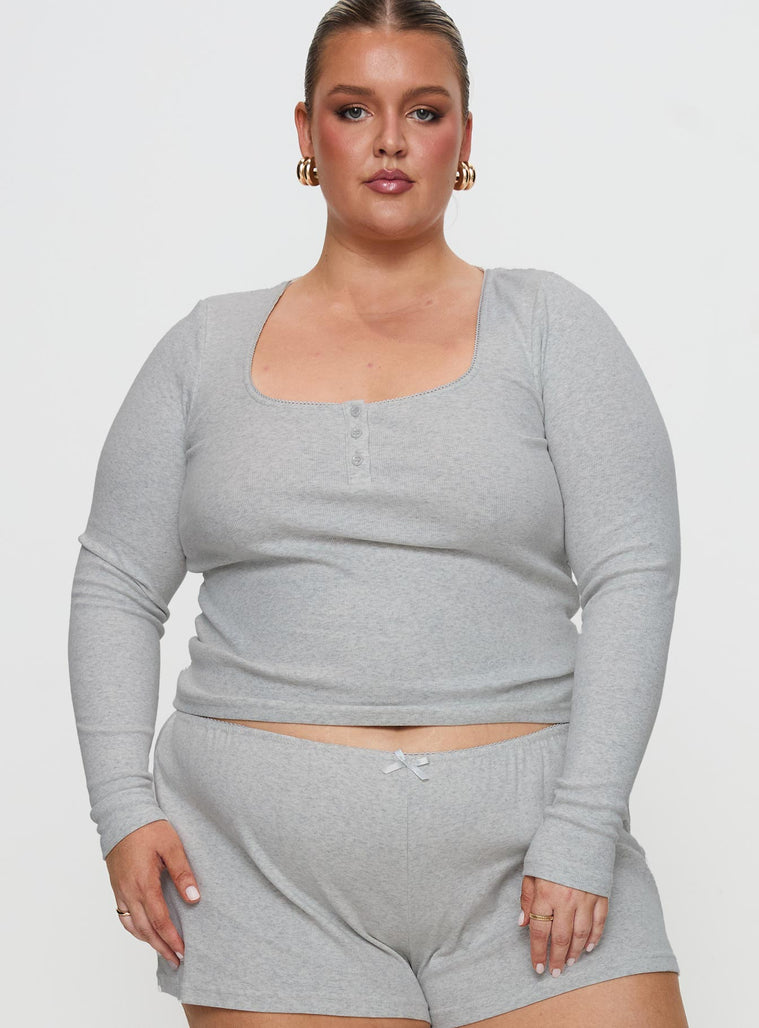 Sleepytea Rib Sleep Long Sleeve Top Grey Curve