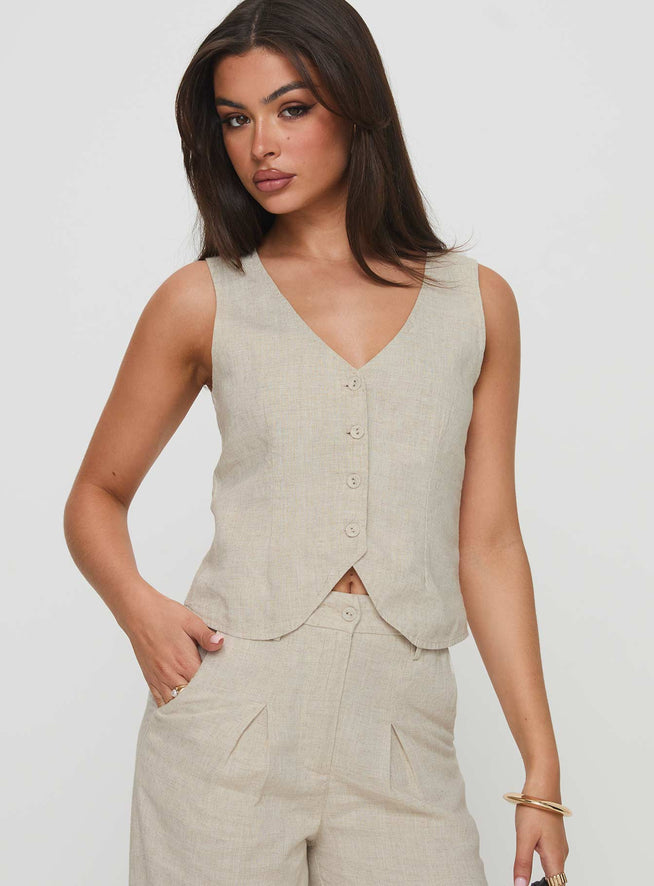 - V-neckline, button fastening at front, split hem, adjustable silver buckle strap at back