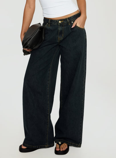 - Grunge washed, belt looped waist, button & zip closure, five-pocket, branded patch at back, wide-leg cut