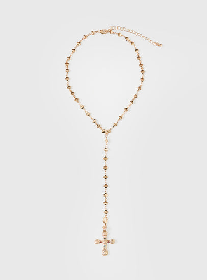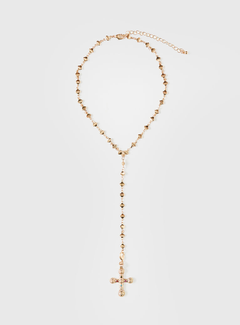 - Cross design with diamante detail, gold-toned hardware, lobster clasp fastening, adjustable length