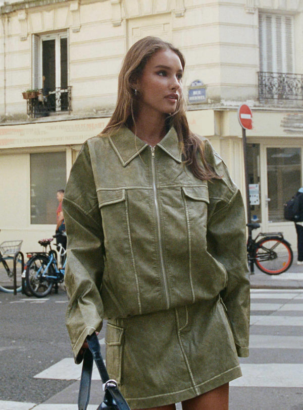 Tanza faux leather jacket washed green