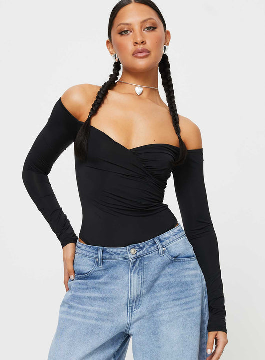 Tarine Wrap Bodysuit Black has a rating of 4.4 stars based on 14 reviews.
