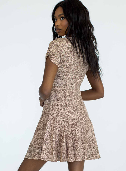 front view of model wearing Princess Polly The Sting Mini Dress Leopard