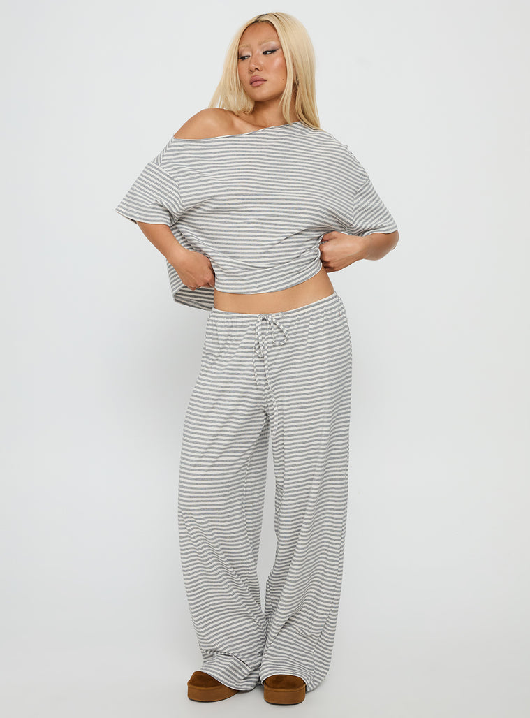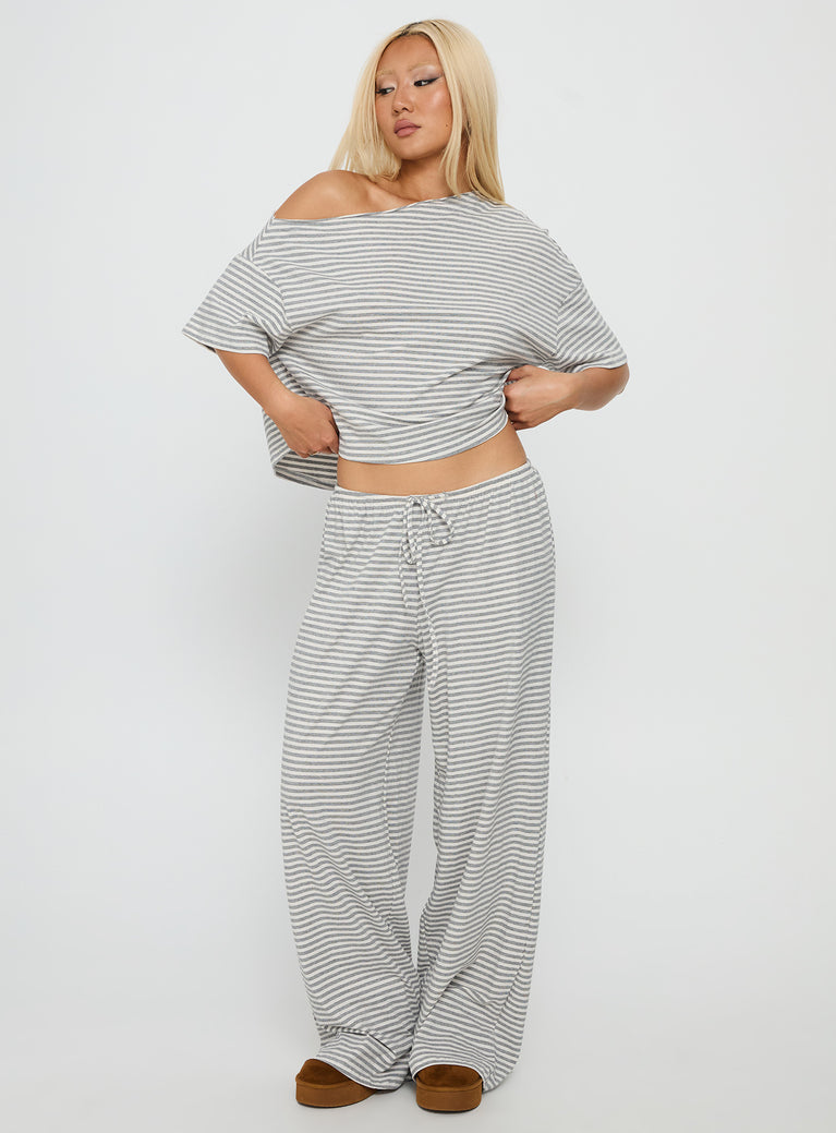Tobie Off Shoulder Sleep Set Grey Stripe has a rating of 5 stars based on 6 reviews.