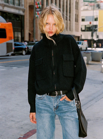 Too Busy Zip Up Sweater Black