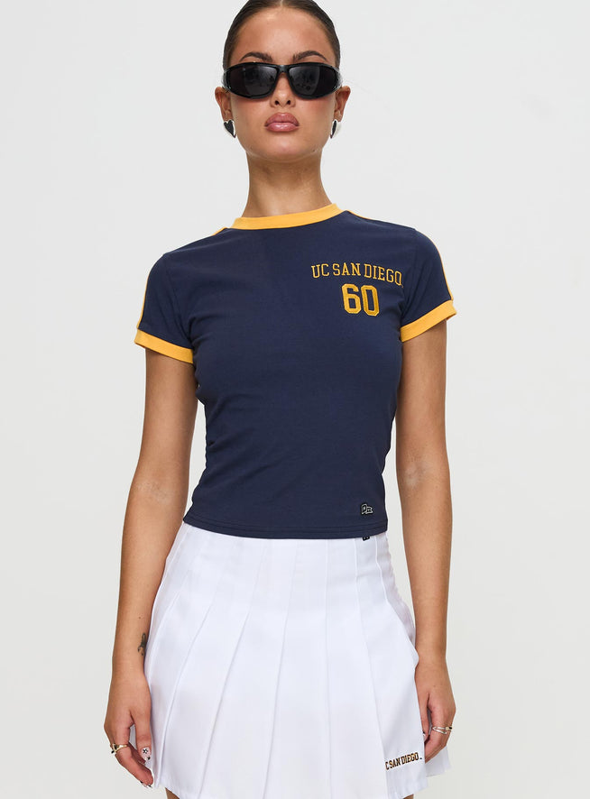 - Contrast trim detail, round neckline, UCSD & number 60 detail, hype & vice branded patch at front, cap sleeves, slim fit
