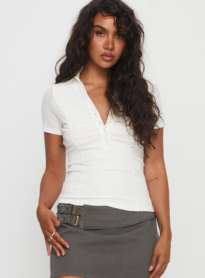 Whirl shirred collared top white