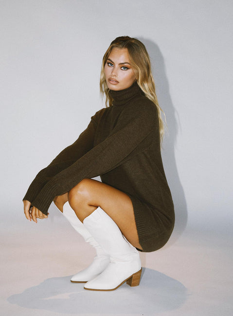 front view of model wearing Princess Polly Zahara Mini Dress Brown